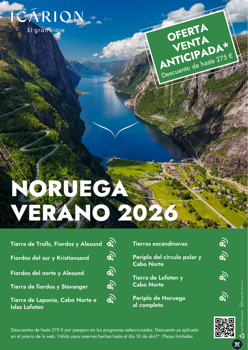 Noruega verano 2026. Oferta venta anticipada. Descuento de hasta 275€.
